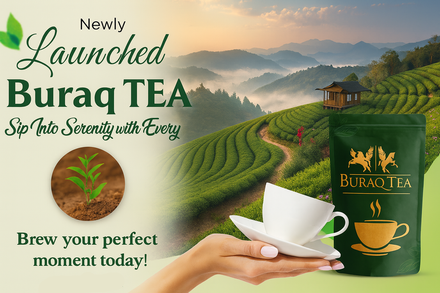Buraq Tea was founded on the belief that a truly exceptional cup of tea has the power to refresh the body, calm the mind, and uplift the spirit. From the very beginning, our vision has been to create a brand that blends tradition with purity—bringing you tea that is not only delicious but also naturally wholesome. Every leaf used in Buraq Tea is carefully selected from trusted tea gardens, ensuring that each blend captures the authentic essence and rich aroma that tea lovers cherish.